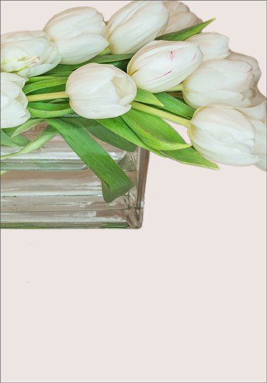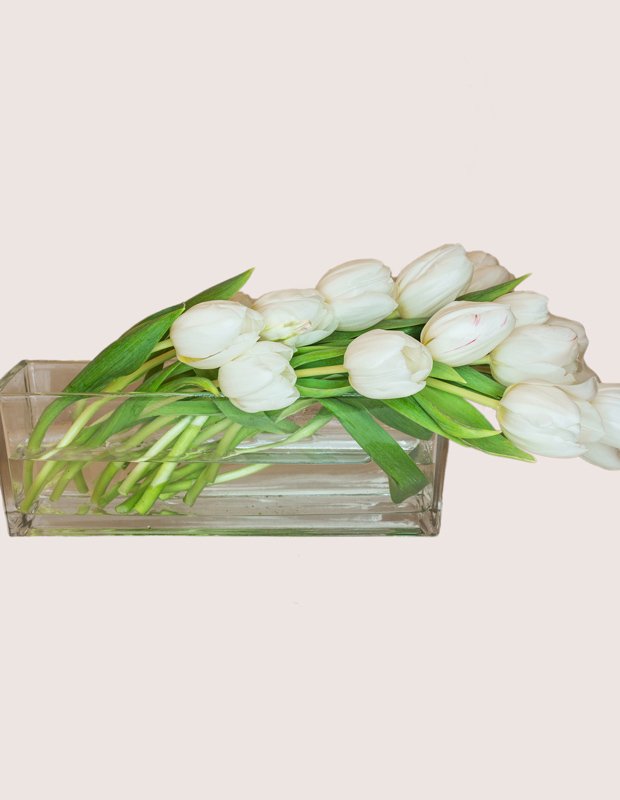 Heaven Scent is a special vase arrangement of white tulips in horizontal fashion.
